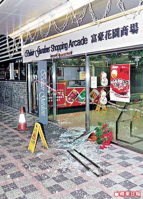當各人行至商場出口玻璃大門時,左邊1米×2米玻璃門因夜深人流稀疏關上,惟曾姓事主行至握着把手推門不成功,疑酒後不為意門已關上,竟多番大力或拉或撞玻璃門,結果嘭一聲,半邊玻璃大門爆裂粉碎,驚動保安員趕至查看。