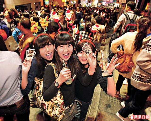 【本報訊】化一個本年度最潮靚妝,開一個本世紀以來最暖洋洋的平安夜派對,迎接聖誕,歡欣的空氣滲滿鬧市。維港兩岸昨夜盡是享受佳節良辰的人群,蘭桂坊有不醉無歸的旅客,尖沙嘴有盡情叫囂的街頭派對。聖誕快樂,MerryChristmas!
