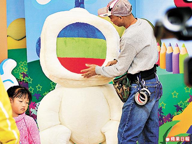 正當工作人員向小朋友解釋拍攝內容,場務叔叔正為TVBuddy整理一番,好讓它整齊出鏡,真細心呢。