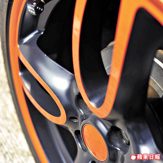 再睇番部黑bB,外形就顯得相當低調,而係集中火力,喺內櫳大玩顏色戲法,用鮮橙嚟同黑撞出驚喜。單看外觀,除咗橙色嘅胎軨外,你可能會稍嫌它平實,但由打開車門一刻,絕對係內有乾坤。橙色內櫳及門板自然唔少得,黑色咕車頂巧妙同車身顏色呼應,水晶配飾一樣唔少得,一盞水晶吊燈點睛,坐喺車廂內,簡直以為自己身處皇宮。