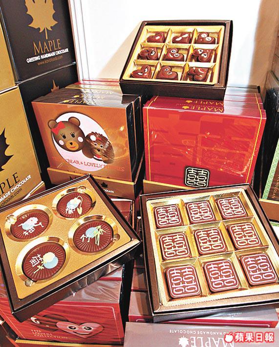 首次參展的嘉和食品國際有限公司則以手製浮雕朱古力搶客,款式計有心心傳情、夢出未來、雙囍等九款。負責人鄭先生表示,浮雕朱古力是新技術產品,原材料來自法國,今次在會場以成本價160元兩盒發售,稍後會在高檔超級市場售價,屆時定價每盒120元一盒,「家係會場買平好多。」他力薦心心傳情朱古力,內有九款不同「表情」的心形朱古力,年輕一族可用來「示愛」;而雙囍則富有中國特色,適合農曆年送禮;估計今日中午前這兩款都會售罄。