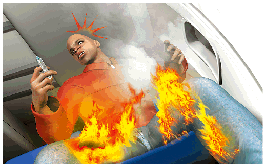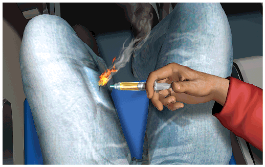客機在20分鐘後降落,當局收到機艙起火緊急事故報告,要客機開到機場偏遠地方,詳細再檢查機上行李。該男子身體受三級燒傷,接受治療和拘留問話,另有兩名乘客在混亂中受輕傷。