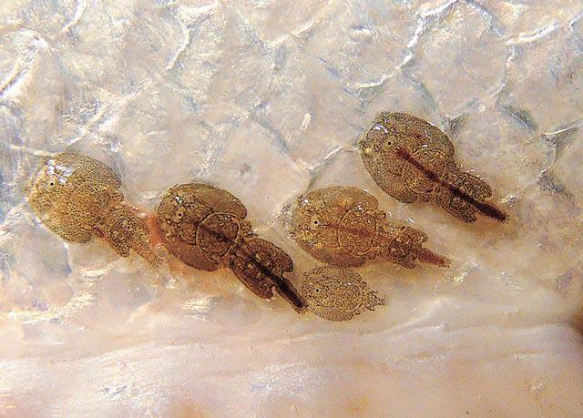 挪威在魚塘發現大量寄生的三文魚蝨子(Lepeophtheirussalmonis),原本在大海自然存在,體形極小,專吃三文魚魚皮和黏膜,數目會在運送或加工期間逐漸減少,對人體無害,零售商見到三文魚被蝨子噬咬,也只切掉被侵蝕的皮肉,免三文魚賣相醜樣。
