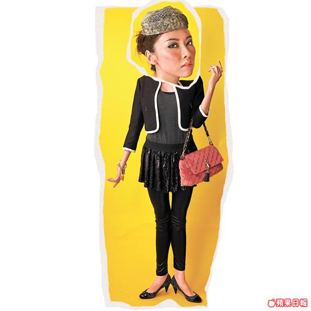 連身黑色閃片裙,夠Active夠Young,後生女應多選BlingBling款。黑色軟皮Leggings是最普遍襯法,現時H&M有很多喱士大花圖案,腿靚者請一試。
