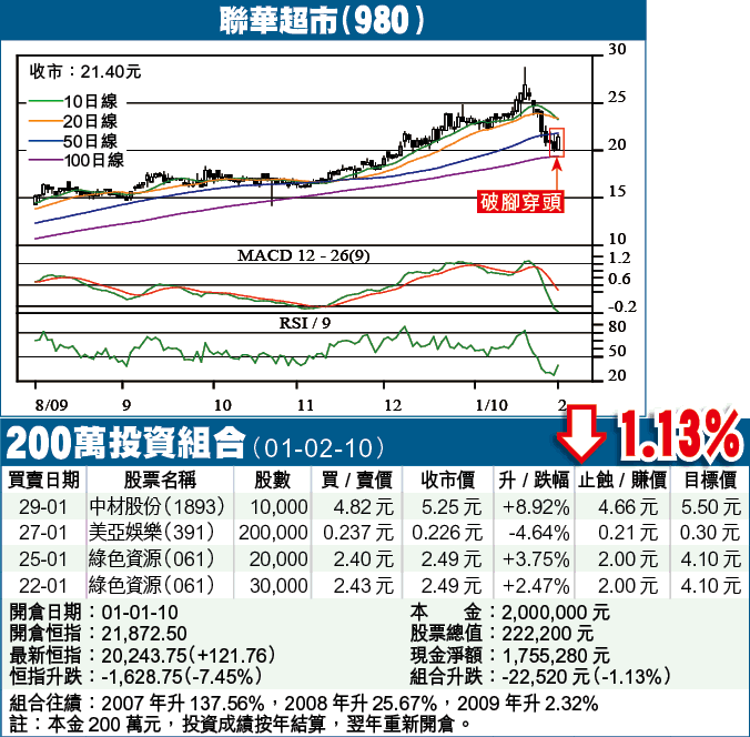 聯華超市規模龐大,以店數計是全國最大的超市集團,相信在超市下鄉政策中受惠最深。即使不計政策因素,聯華規模效益開始發揮,預料業績將出現快速增長,以中長線角度出發,亦屬贏面甚高的股份。