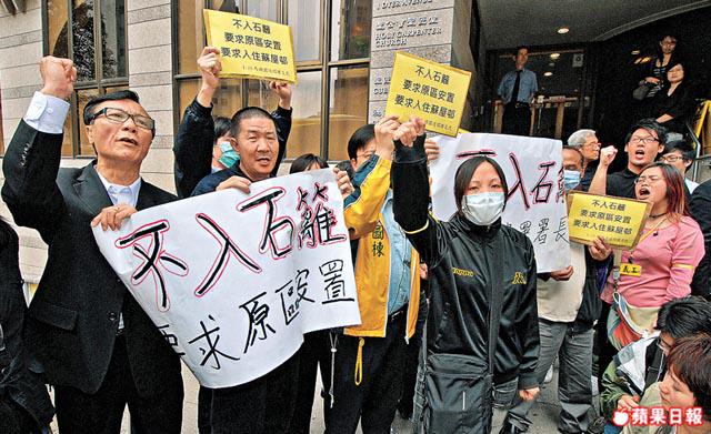 昨午1時許,民安隊正安排災民離開,約10戶災民代表在聖匠堂外高舉呼:「不入石籬,原區安置」,要求房屋署署長陳鎮源到場了解災民的訴求。互聯網有留言批評災民「唔好咁貪」、「冇人欠你哋」,但災民馬先生解釋,他們絕不是想濫用公屋資源,爭取入住同區的蘇屋邨,會付足租金,也明白只是臨時性質,無意「打尖」上樓。