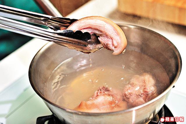 燜豬手前最好先汆水,除可去腥味,煮出來的汁料會較清。