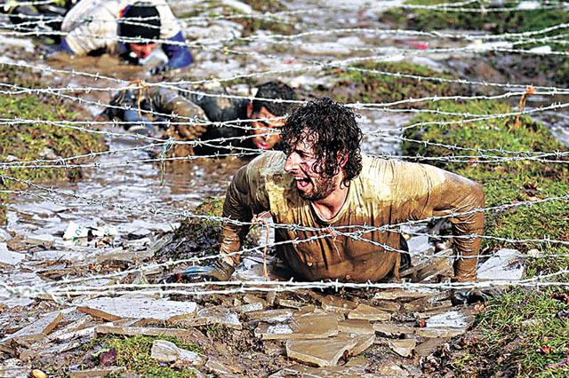 衝火堆、涉泥漿、游冰河,號稱全球最艱苦的英國「硬漢挑戰賽」(圖)前日(周日)舉行,吸引5,200名來自多國包括中國的男女參加,向人體極限挑戰。