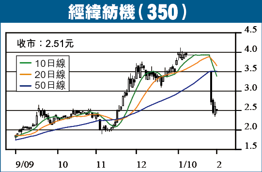 經緯紡機(350)停牌十多天,以等待公佈消息,結果是收購金融公司股權,有轉型意味,復牌後股價暴跌,反映市場對金融業的保留,其跌勢亦包括追回停牌時的跌幅,復牌後的低價較停牌前跌40%以上。