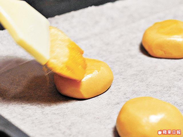 雞蛋加入1湯匙水才塗上餅面,焗出來便不會太搶色。
