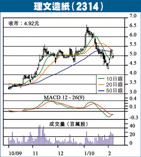理文造紙(2314)由低位回升,表現強勢,短期有機會重遊上月初高位。