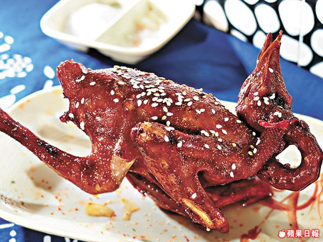 以自製甜豉油將原隻乳鴿滷至入味再燒。皮燒得香脆,啖啖嫩肉帶醬汁甜味。