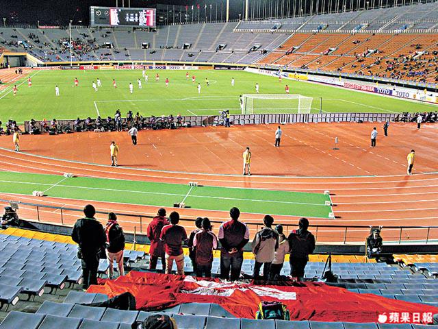 在近攝氏零度的低溫下,入場球迷僅2,728人,令可坐約5萬人的國立競技場非常冷清。球迷以日本人為主,香港球迷主要集中在南側,包括十多名專誠由香港飛來打氣的球迷,他們於開賽前一小時已掛上7條橫額及區旗,其餘港隊球迷多為在日留學生。約300名韓國球迷則佔據着北側,聲勢遠勝香港fans。