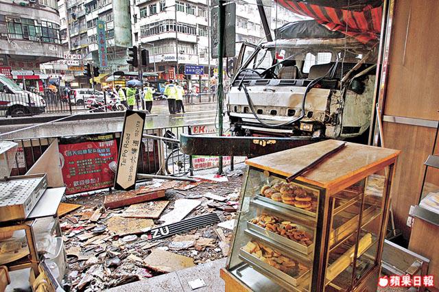 有目擊者憶述,貨車先後撞及部份店舖食客及途人,共兩男三女受輕傷。貨車車頭擋風玻璃損毀,車頭的司機妻子疑未有佩戴安全帶,從擋風玻璃位置飛出車外,她頭、手及腳受重傷,倒卧四米外麪包店行人路上,司機扭傷頸及腳部被困,驚呼「阿媽、阿媽」。