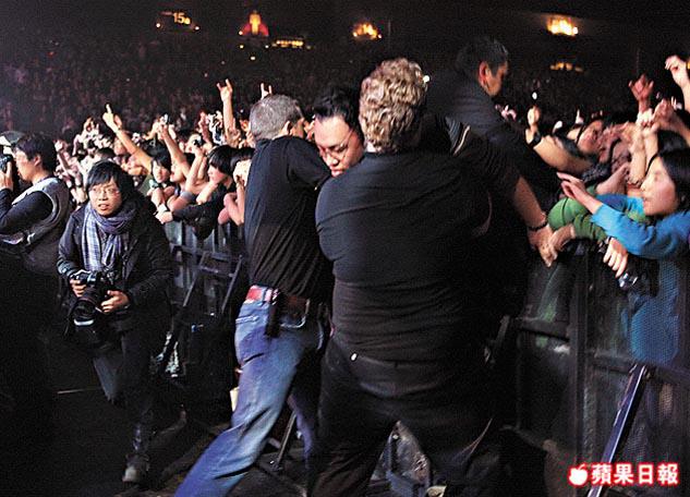 前晚座無虛席,企位區的觀眾情緒更為高漲,當Muse出場獻唱新碟單曲《Uprising》時,台前觀眾瘋狂向前推擠,導致多名fans不適,需要保安人員協助離開人群。