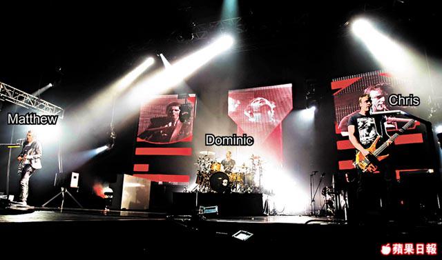 Muse前晚主要演唱近幾張大碟的作品為主,當大熱作《StockholmSyndrome》的前奏響起時,全場情緒更加一發不可收拾,齊齊跟隨節奏躍動。雖然Muse一早表明未能將歐洲巡迴的巨型柱體視像舞台帶來香港,但前晚作為代替品的三個20呎高屏幕也震撼十足。