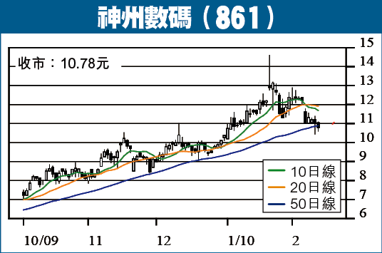神數現價10.78元,預期核心PE26倍,息率1.4%,由於業績反覆,純利率低,投資價值已反映,而神數經常涉及科技概念(如三網融合),且屬基金愛股,故表現較為特別,雖有反覆,但似獲若干資金支持,因而表現或優於大市,股價表現看基金意向。