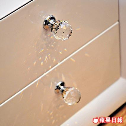 一個好的家居設計,必須有貫徹的風格兼有主題,甫進屋,便被屋內不同位置的水晶燈吸引着,香檳金主調的客廳,選用特色鏡材、花紋家具,摩登中滲透出古典味。客廳以多線條和扭花的水晶燈,配上梳化後的兩面鏡牆,兩者互相反射下令這盞白色天花燈頓成全廳焦點。至於飯廳則用上古典味重、但Detail位較Modern的Baccarat水晶燈,最重要是線條簡潔而通透度高,最適合放在飯廳。就連各個洗手間,於鏡前亦配襯長形的水晶串燈,令氣氛更加柔和瑰麗。