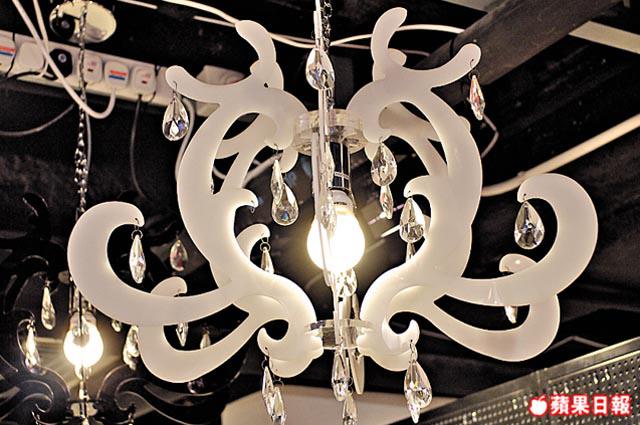 細小家庭放全盞水晶燈未免有點吃力不討好,這款阿加力仿水晶吊燈以燈影為設計藍本,簡單又時尚。