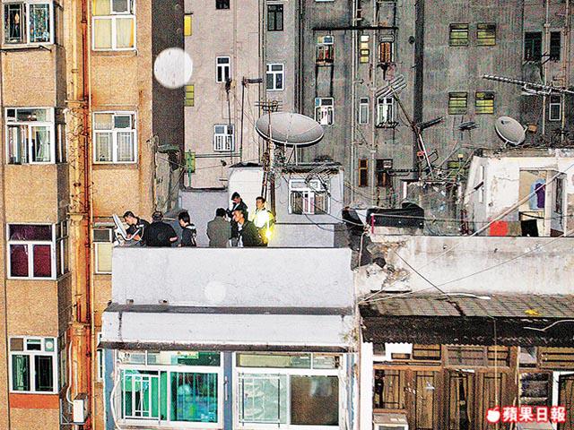 昨午3時許下着雨,一把長約1呎的菜刀突從高處墮下,跌落207號對開一個排檔的鋅鐵簷篷頂,再反彈墮地,幸無擊中途人。警員接報後迅速趕至封鎖現場兩邊大廈入口,並登記所有離開大廈人士身份。在附近一帶監視擲鏹狂徒的警方特遣隊便裝人員則對可疑大廈監視,其間見一名男子在205至207號5樓一單位掟下一張卡狀物體,立即通知同袍。
