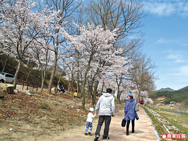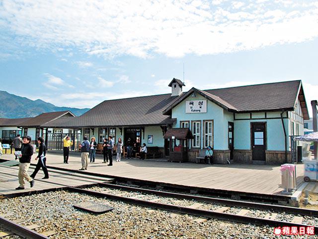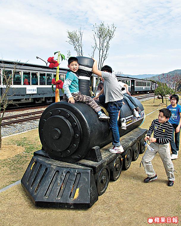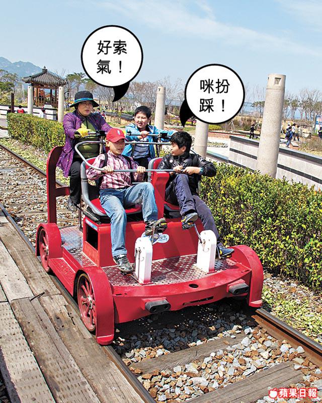 「蒸氣火車聲音雖然有些沉悶,但卻讓人感到非常新奇。」谷城的小冊子上這樣寫。蟾津江火車村的蒸氣火車是六十年代產物,連同谷城站,氣氛和50年前一樣,引來元斌名作《太極旗飄揚》在此取景,或許是「60前」緬懷過去歲月的地方,但今日正式宣佈被細路佔據!因為昔日的廢棄車站和火車,已被改造成火車村主題公園,古董火車和最新的KTX火車都可在這裏找到。我們面前的,是一班又一班的幼稚園學生、小學生和中學生!上到蒸氣火車,我們便像發了癲,因為車廂內坐滿了一班來郊遊的幼稚園學生,掛住搏命影呀影,窗外一片花海都無留心睇過!十分鐘車程話咁快就完!到達柯亭站,才有機會在蟾津江賞櫻花。這次居然給我誤打誤撞遇上櫻花最盛開的日子!真好運!全羅南道的櫻花顏色較白,和我之前在沖繩看的寒緋櫻不同。火車是循環線,回到谷城站,我們又有另一任務:鐵道單車。咪以為單車在路軌上很易踩,我們四人跳上車,出盡大髀力狂踩,也要15分鐘才完成1.6公里路程!可恨我們要趕着離開,唔係一定會在火車改裝的旅館,住番一晚。