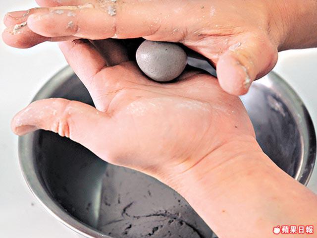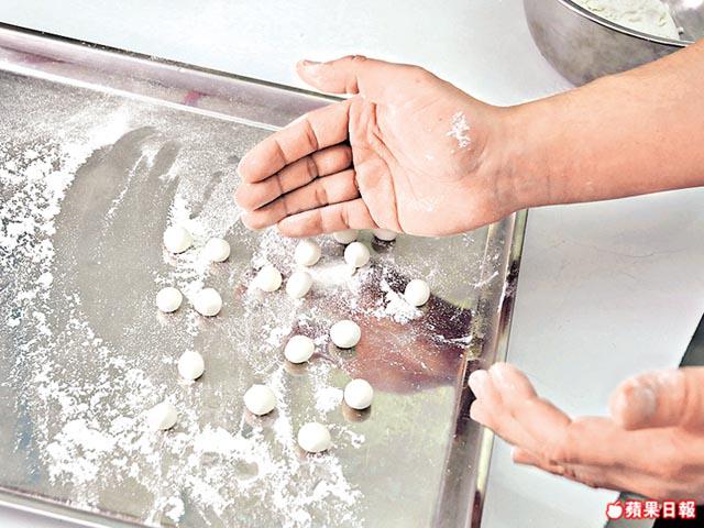 2. 取出少許麪糰,放於掌中搓成小丸狀。