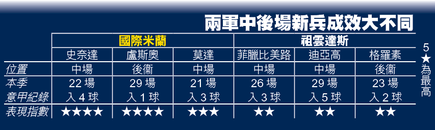 簡評:國際米蘭與祖雲達斯今季的成敗差異,某程度取決於於本季加盟的新兵成效,單說中後場,國米新兵便遠勝祖記的新兵。