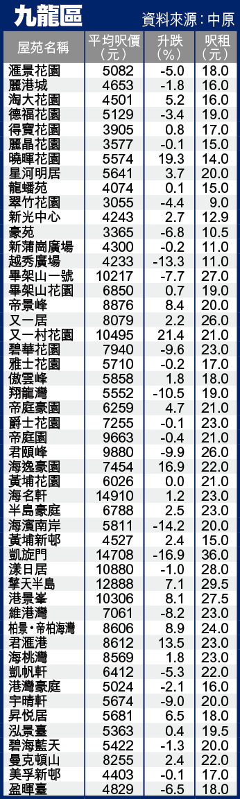 統計日期5/4-11/4(升跌幅為與前周比較)