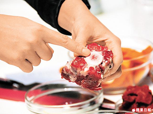 買牛尾時,除請肉販代切,自己切亦很容易,只要在骨節之間落刀,就相當容易切開。