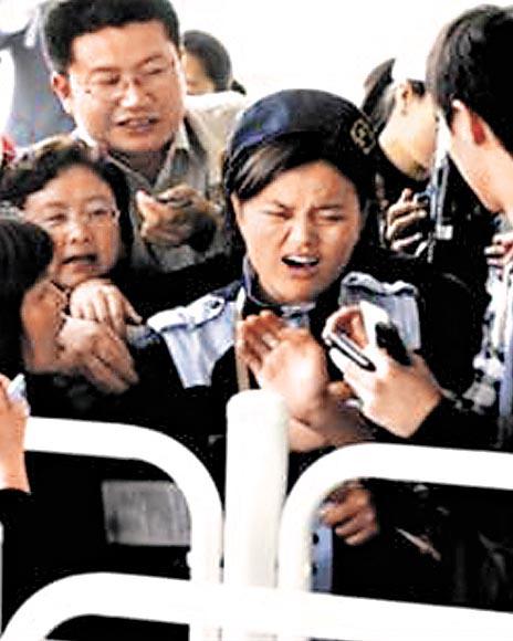 「你說我能不激動嗎?」有市民怒氣冲冲指着工作人員說:「我開門不到五分鐘就進來,前邊就發了幾個人,為甚麼就沒有票了?」有男子攬住公安的頸和手臂不放:「你給我票!你剛才答應我的!」公安不停地閃縮。有市民不滿地高聲向傳媒投訴:「一會叫我們排那邊,一會又叫我們排這邊,結果還是沒(籌),搞甚麼名堂!」