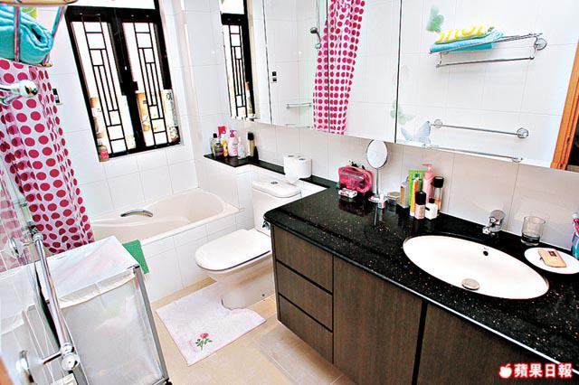 寢區只設兩房,較大的套房,間隔四正無窗台,向南的大窗視野開揚廣闊,可遠眺九龍中部開揚樓景。向西還有兩扇窗,光猛通爽。套房佈置非常簡單,只有衣櫃及睡床。另一房間面積也有約100方呎,兩張睡床可並排置放,之間放書枱,床尾建有大衣櫃,放下多組家具,不覺侷促之餘,仍有不少走動空間。套廁及客廁設備齊全新淨,全部可保留續用。