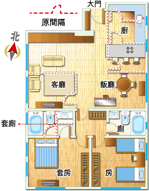間隔:2房(1套)2廳