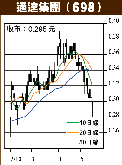 另外,通達下半年計劃投入生產LED電視機導光板,今年預期產能可達150萬件,來年更可望升至600萬件。眾所周知,液晶體電視將以LED背光取代現在最常見的LCD,加上LED電視不含汞,更加環保。在市場對LED電視需求的刺激下,集團未來應進入一個新的增長高峯期,現在單以現有業務計算的11倍市盈率估值並不算高,如憧憬LED導光板業務增長,此股現價應具抗跌力,可入觀察吸納之列。