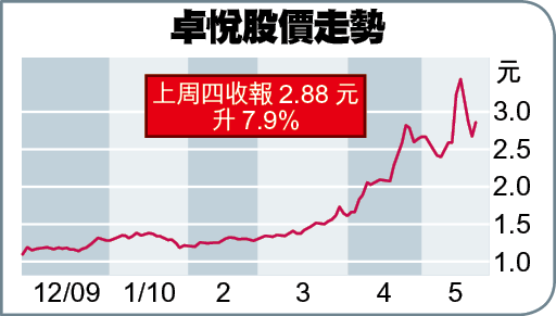 卓悅去年銷售按年升26%,業績理想,加上變相拆細股份的效應帶動下,股價自3月底以來一直扶搖直上,股息率亦相應降至3厘左右。