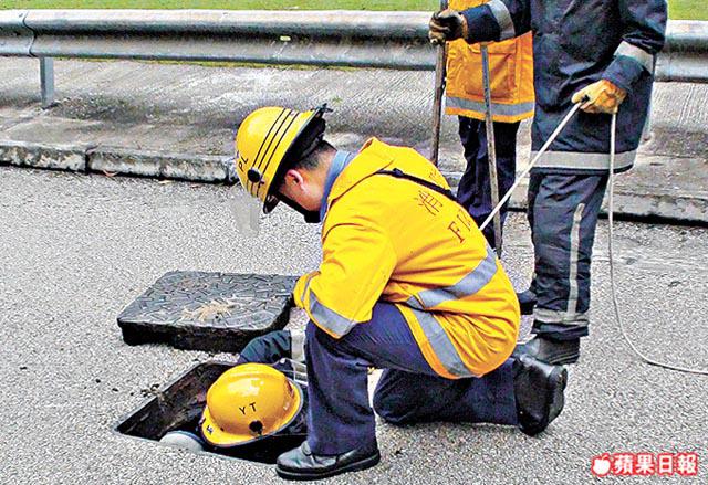 【本報訊】一頭無晶片流浪唐狗仔,昨晨被途人發現困在藍田澳景路地下引水道內,愛護動物協會奉召到場無法施救,消防員接報落井發現小狗,但牠匿在渠窿內,消防要在四米外再打開另一渠蓋,放入狗籠,終引君入甕,成功將小狗救出,牠並無受傷,事後交由愛護動物協會人員帶走檢驗。