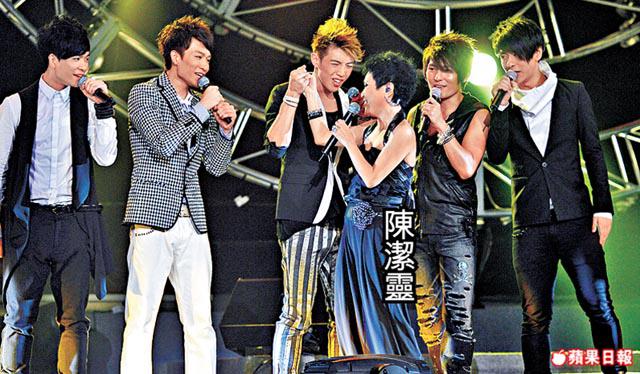 無綫《超級巨聲》的成員前晚在紅館開騷,人氣急升的「福祿壽」及陳潔靈擔任嘉賓,另外久違了的陳秋霞也來捧場睇騷。巨聲一幫成員分別有獨唱及分組演出,林師傑上台機會最多,又扯高白衫露腹肌扮韓國天王Rain唱歌,眾人上台時他又企中間。