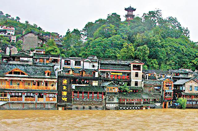 「雨勢很大,鳳凰古城的沱江水位還在上漲。」家住鳳凰古城的鳳凰縣委宣傳部副部長曾文松說,古城現多處停電。古城沱江邊很多吊腳樓被淹沒;橫跨沱江的木橋淹入水中;古城著名的鎮竿張氏姜湯倉庫水浸,不少居民都無法出門;沈從文故居亦臨水浸之危。古城通往外界主要公路部份路段水淹,無法通車,對外交通中斷。水災致古城6人死及兩人失蹤。此輪降雨令湖南6市45縣380萬人受災,直接損失13.2億元。