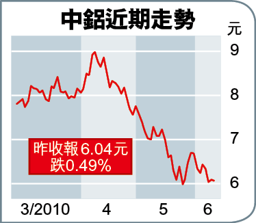 據《澳洲金融評論》早前報道,面對澳洲開徵礦業暴利稅,加上成本上升、鋁材供應過剩及需要在昆士蘭州建立一個昂貴煉鋁廠,中鋁有意暫時擱置澳洲鋁土礦開發項目,及尋求撤銷興建氧化煉鋁廠。受澳洲開發項目可能取消拖累,中鋁昨最多跌2.14%,收報6.04元,跌0.49%。