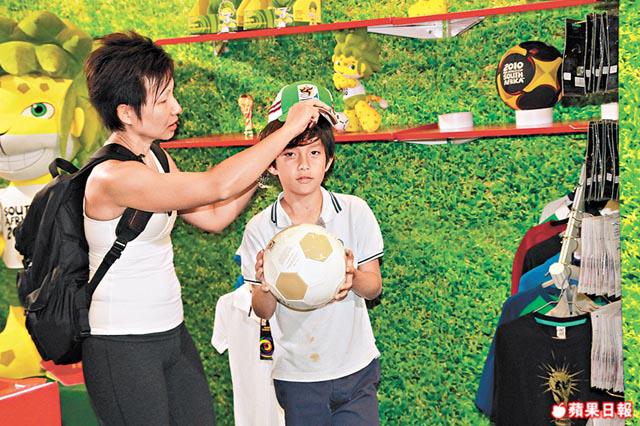 訪問當天,剛好遇到3母子到場掃貨,兒子對1米4高的Zakumi公仔及皮球愛不釋手,母親則搜購帽子、皮球及世盃Tee,這位居港的南亞裔母親說:「我丈夫是英國人,兒子時常有生日會,世界盃是全城熱話,這些精品價錢又不貴,所以多買一些作為生日會的交換禮物。」