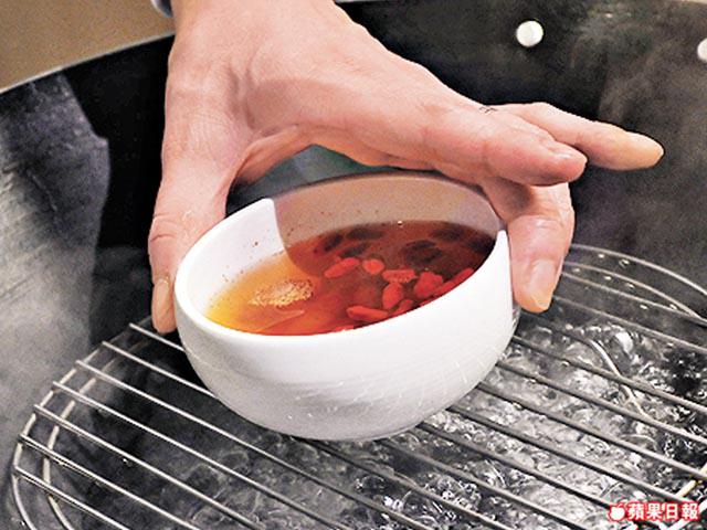 2.另將燕窩放入鑊,以大火隔水蒸10分鐘。