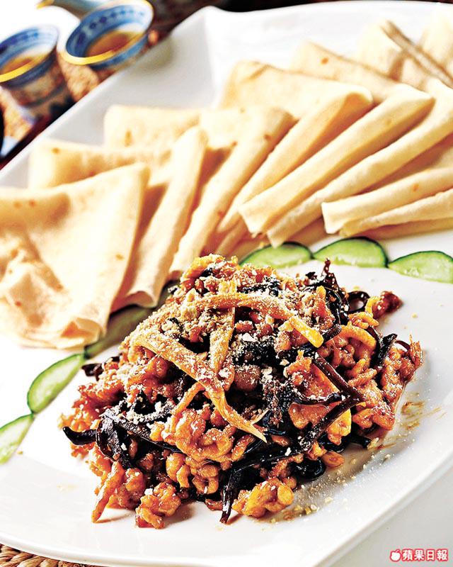 豬肉絲炒得好惹味,配以金針和黑木耳絲同煮,口感爽中帶咬勁,吃時包上上海薄餅,特別有風味。