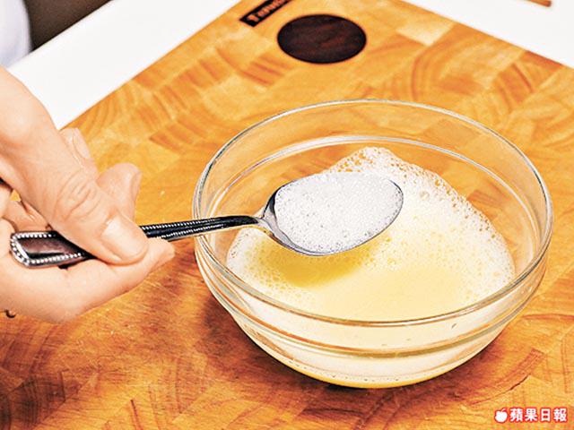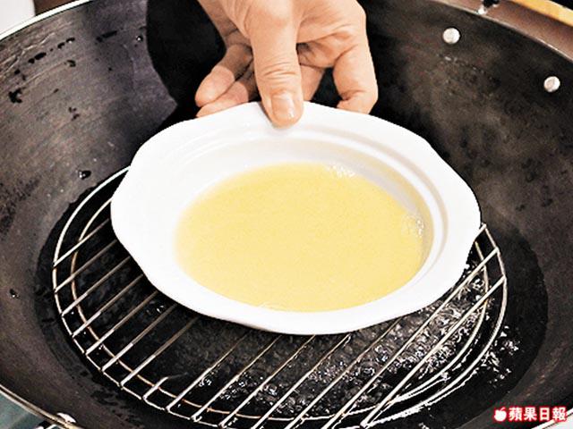 要確保鵪鶉蛋質感滑不留口,記住一定要用暖水打蛋,之後將表面的氣泡隔走,才拿去蒸。