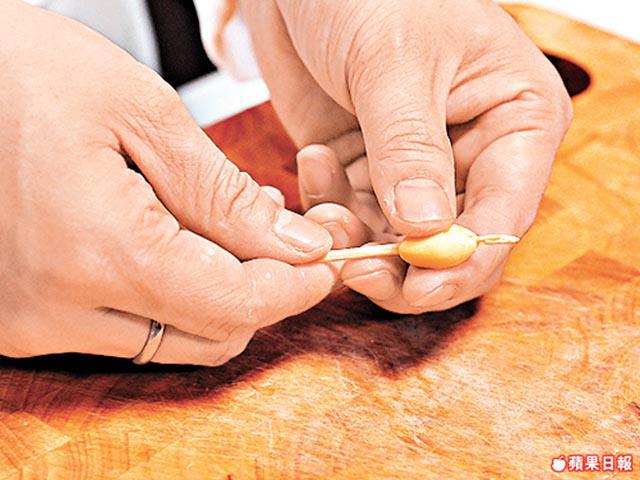 銀杏的衣及心均帶有苦味,烹煮前一定要先將其去除,以免影響味道。