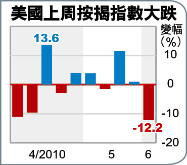 數據方面,美國4月批發庫存上升0.4%,雖略遜預期,但為連續4個月上升。上周按揭申請指數則大跌12.2%,當中置業按揭申請指數跌5.7%,顯示華府的置業稅務優惠於4月底屆滿後,樓市的復蘇勢頭無以為繼。