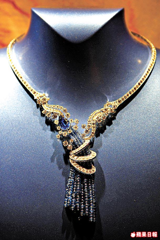 名為FatalAttraction的藍寶白金鑽石頸鏈、戒指、吊墜、耳環,呈垂懸的姿態像涓涓河水般,像情感蜿蜒的流動着。StolenKiss戒指、胸針和耳環,則以白金、鑽石、紅寶、粉紅藍寶石等組合而成,紅與粉紅的點綴,就像女性櫻唇般充滿誘惑。