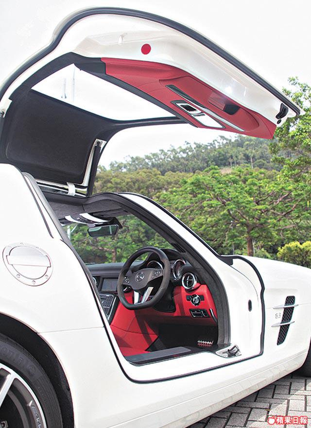 於車展第一眼接觸平治SLSAMG,就感受到它所擁有的魅力絕非一般超跑能及,全因這部集不同年代結晶的SLS,其實是向平治經典型號300SL致敬,所以即使重新演繹,仍保留一點點古典美態。鷗翼車門、長長車頭、圓渾車尾及一字形加圓形三星標記鬼面罩的簡潔設計,這些復古元素通通都令SLS於超跑界感覺更出眾。貴為改裝名牌AMG首部自主獨立發展的汽車,不論外在內在都是嘔心瀝血的傑作,因為要將懷舊及時尚取得應有的平衡實在有一定難度,而加入大量碳纖配件的SLS就是新世代跑車的象徵,如桶椅、門檻及引擎艙等都是由碳纖打造,當然將車身輕量化令淨重達至1,620公斤是另一大主因。今次率先引入了黑、白、銀三款車身顏色,雖未有經典紅色而感到出奇,但我就覺得白身紅櫳的確最能襯托出這部復古超跑的美態。