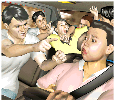 黃遂用廣東話回應:「發生乜嘢事?」坐前排一名大漢似聽不懂粵語,連忙用普通話喝止黃:「你不許說白話!」坐後排的三名男子見事主掙扎即時毆打他。這時坐前排的男子見司機行的路線不對,企圖搶軚改變方向。