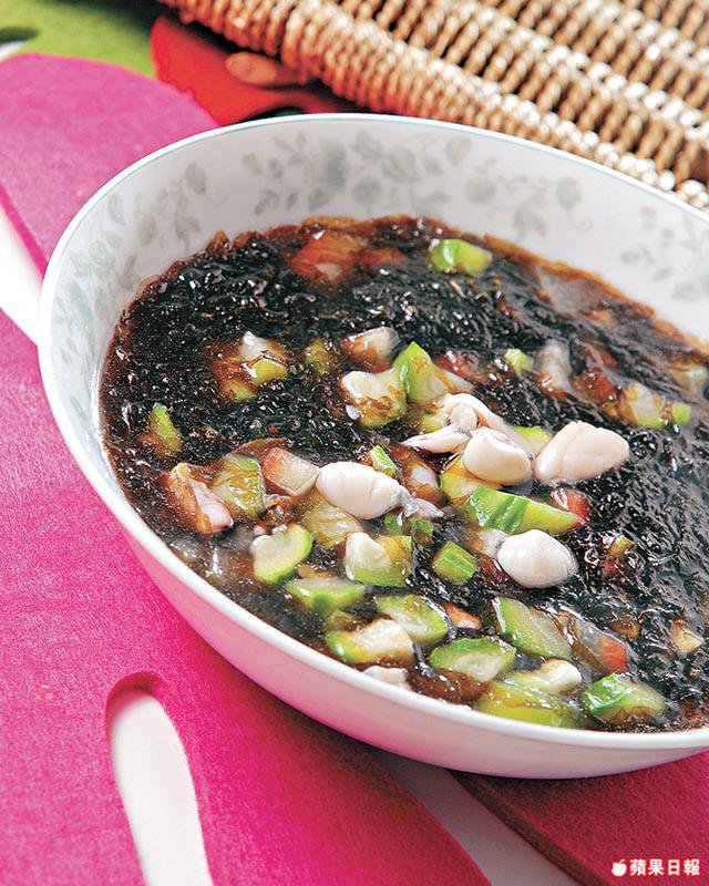 沙律汁中加入生津止渴的烏梅,加上辣汁拌成鹹鹹辣辣的沙律,令人胃口大開,體力回復。
