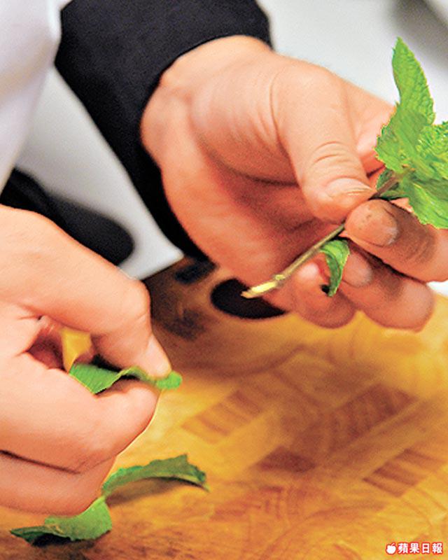 1. 把薄荷葉洗淨,捲起切碎備用。