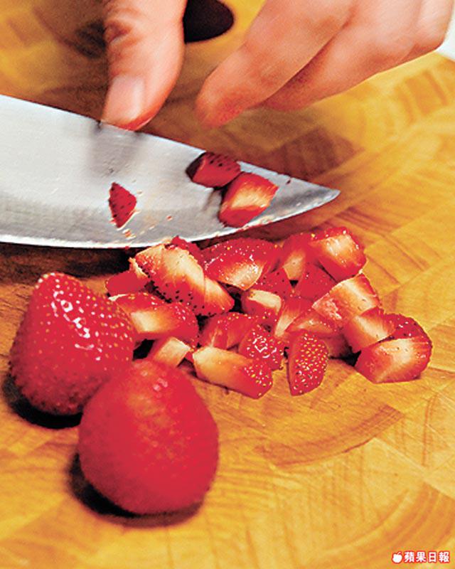 2. 士多啤梨洗淨去蒂,切碎備用。